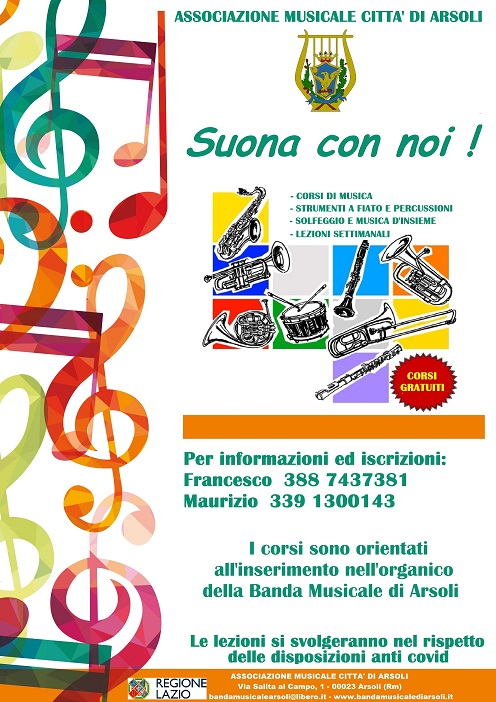 L’Associazione Musicale Città di Arsoli è decisa con questo progetto, finanziato interamente dalla Regione Lazio (DIREZIONE REGIONALE CULTURA E LAZIO CREATIVO